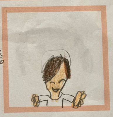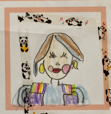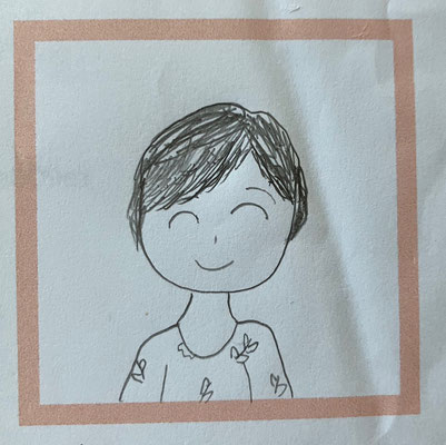 (生徒さんたちに講師の似顔絵をかいてもらいました♪ 左上から時計回りに 小3女の子 小1女の子 小4女の子 小2男の子)